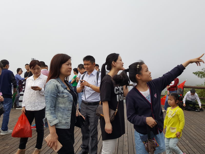 第四站:長老峰風(fēng)景區(qū)之韶音亭。我們乘坐索道纜車上山,下纜車步行幾百米就到了韶音亭,這真是個(gè)觀景的好地方,站在亭邊放眼望去,蒼翠幽深的山林,各種形似的山峰(如:僧帽峰、書童石等),變幻莫測的云霧、山底的人工河等無限美妙的自然風(fēng)光盡收眼底,使人產(chǎn)生無窮的遐想,還有一種飄飄然的感覺。